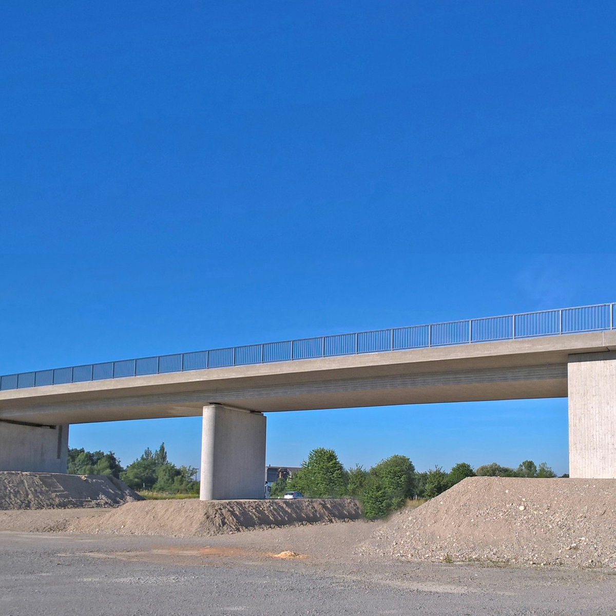 Neubau einer Zweifeld-Spannbetonbrücke in OrtbetonStandortA94 bei MalchingAuftraggeberAutobahn GmbHBauleistung Übergangskonstruktion Brückenentwässerung Spannbetonbrücke Zurück